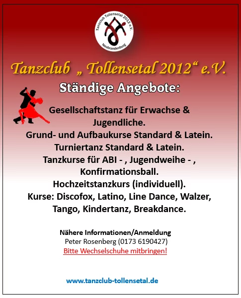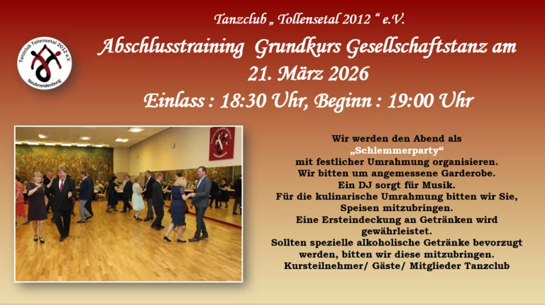 Am 11.10.2025 nahmen Thomas Lucke & Heike Gritzka und Ringo Päpge & Claudia Krause erfolgreich am Nachwuchs Tanzturnier für Breitensporttänzer in Grimmen teil. Heike Gritzka & Thomas Lucke ertanzten sich den 4. Platz in der Altersklasse AK V Standard. Ringo Päpke & Claudia Krause belegten den 3. Platz in der Altersklasse AK IV Standard. Für beide Tanzpaare war das ein gutes Ergebnis, dank der guten Vorbereitung durch den Trainer Mikolaj Kubiak. Der Vorstand gratuliert herzlich und bedankt sich beim Trainer.