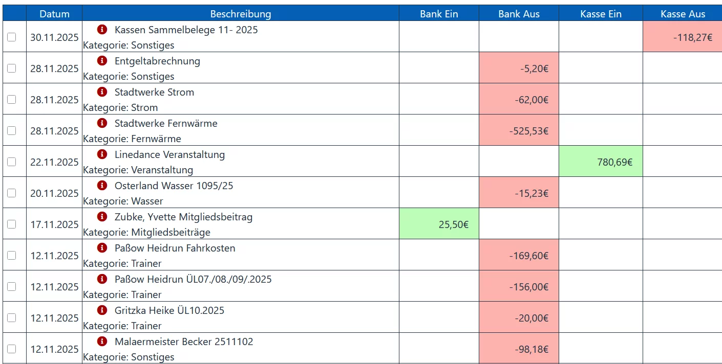 Unser Kassenwart hat in 2025/ 26 ein digitales Kassenprogramm erarbeitet, das bis zum brauchbaren Endzustand weiterentwickelt wurde. Die Umstellung auf das digitale Kassenprogramm spart gegenüber der bisherigen Kassenführung viel Zeit und die gewünschten Kassenein- und –ausgänge sind sofort verfügbar.