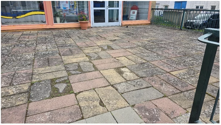 Der Zugang auf der Terrasse zu unseren beiden Tanzsälen ist derzeit bis zum Gebäudeeingang in einem sehr mangelhaften Zustand.